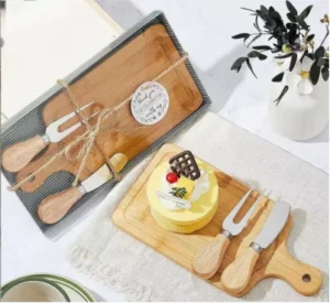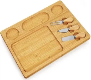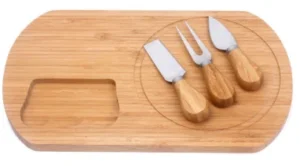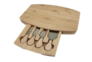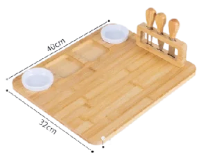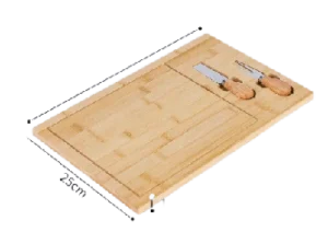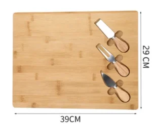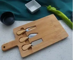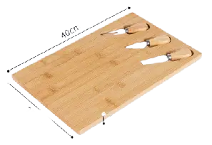 | Bambo cheese board with knifes set is similar to charcuterie board but cheese board is for cheese or bread and fruit more , FRbamboo cheese boar is from 100%^ natural bamboo cutlery set and serving platter. | ||