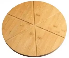 •Round shape with 6 sliced bamboo pizza board • Natural Bamboo • 3 layers horiozntal pressed • Carbonized Color • Sanded and Plant Oiled | 33cmx33cmx1.5cm |