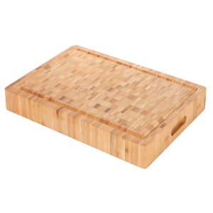 • Natural Bamboo • 1 single layer Verticla • Carbonized Color • Sanded and Plant Oiled • Hole Handle • Juice Groove ( 2mm deep)